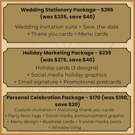 Free 1 hour consultation with every package purchase, and 30 minute consultation with the purchases of any graphic design.