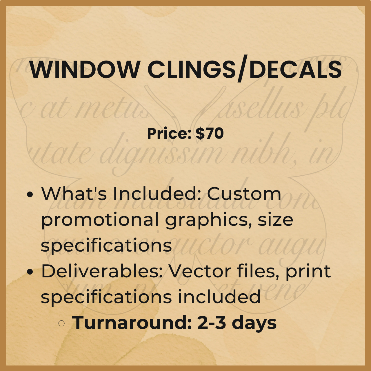 $25 = 30 minute consultation without the purchase of a graphic or graphics package.