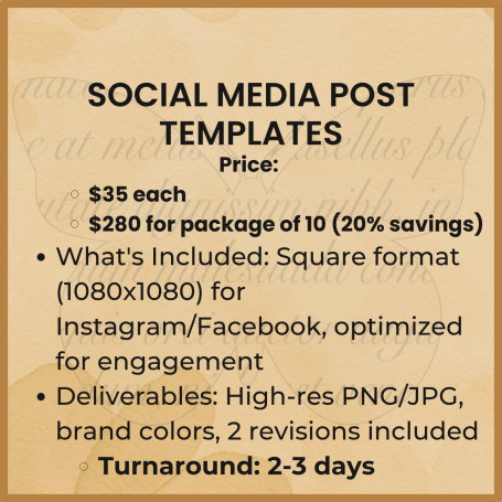 - Post Templates - $35 each | 10 pack - $280